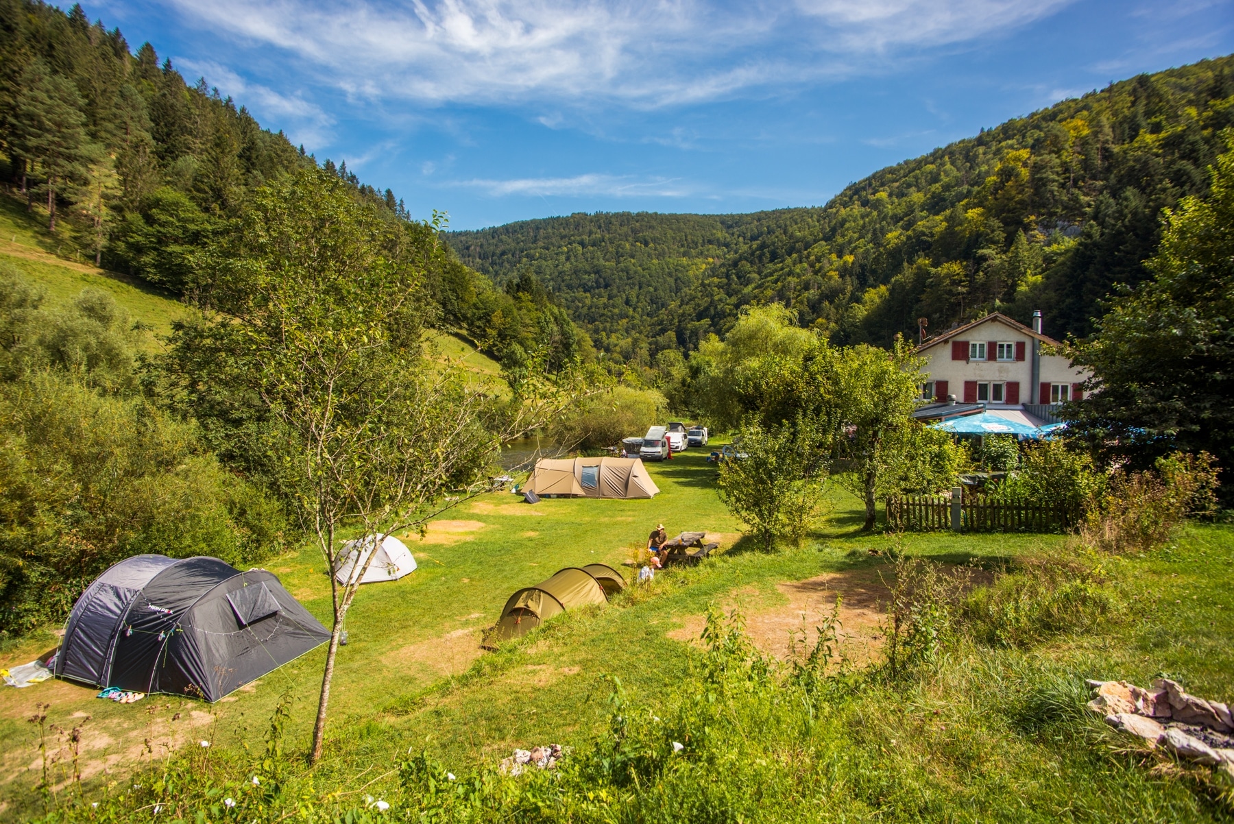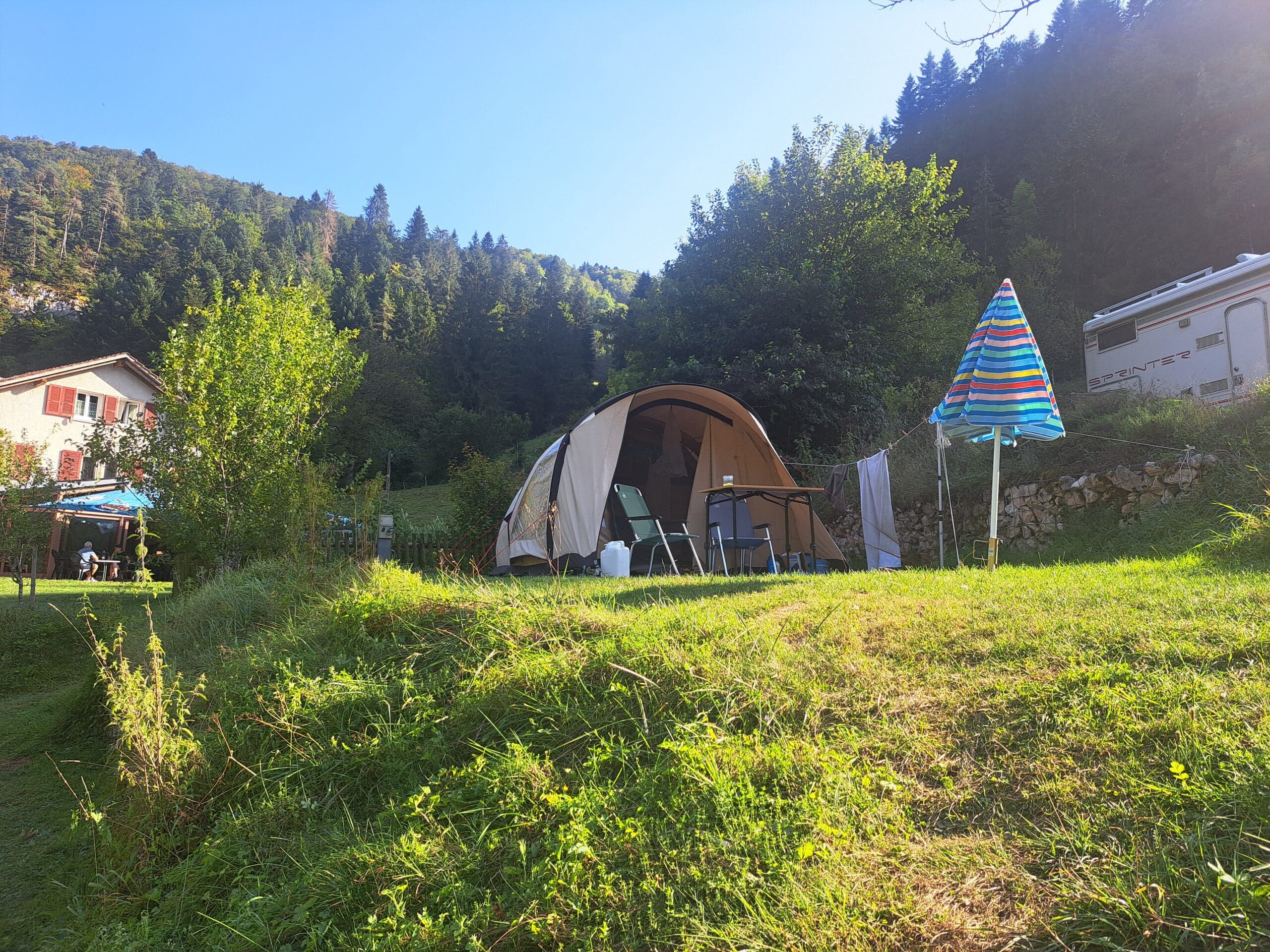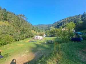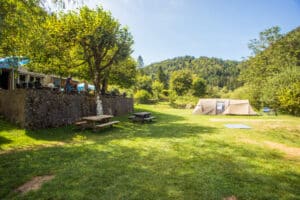 Les emplacements pour tentes sont spacieux et non délimités, permettant une installation flexible selon la taille de votre tente. Bien qu’il n’y ait pas d’électricité sur ces emplacements, vous pourrez utiliser les prises disponibles dans les espaces communs. Pour des raisons d’accès, les remorques pliantes sont considérées comme des caravanes.
