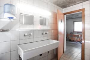 Vous avez la possibilité de vous laver les dents, les mains, faire votre vaisselle et prendre votre douche à l’extérieur. Une démarche facile et très apprécié de notre personnel de nettoyage.