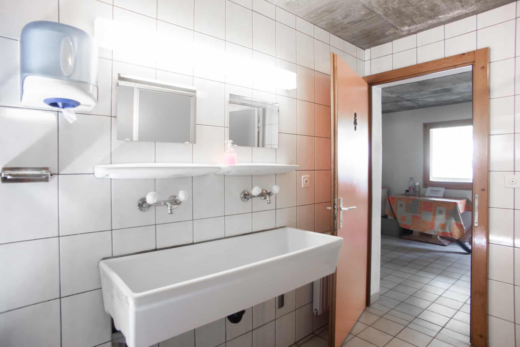 2 douches et 2 toilettes pour femmes et hommes – eau chaude inclus (pas besoin de jetons) à utiliser avec modération.