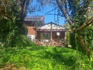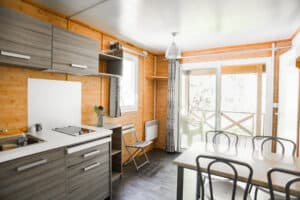 Nos 4 chalets tout équipés, construits en 2016, offrent un cadre chaleureux et moderne. Trois d’entre eux sont situés au bord de la rivière, avec un accès partagé par des escaliers, pour une vue et une ambiance uniques. Le quatrième chalet, idéal pour les familles avec de jeunes enfants, se trouve près d’un charmant ruisseau qui traverse le camping. Ces chalets sont parfaits pour ceux qui recherchent confort et sérénité dans un cadre naturel. Chiens acceptés avec un supplément et sous conditions – tarif dégressif à partir de 3 nuits – parking inclus dans le prix.